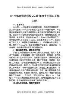 XX市体育运动学校2025年度乡村振兴工作总结.docx