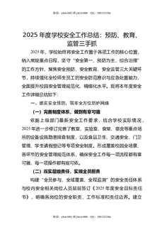 2025年度学校安全工作总结:预防,教育,监管三手抓.doc