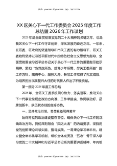 XX区关心下一代工作委员会2025年度工作总结暨2026年工作谋划.doc