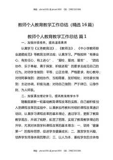 教师个人教育教学工作总结(精选16篇).docx
