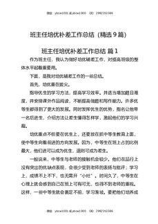 班主任培优补差工作总结(精选9篇).docx