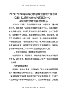 202X至202X学年学校教学常规管理工作总结汇报:以提高教育教学质量为中心,以规范教学常规管理为抓手.doc