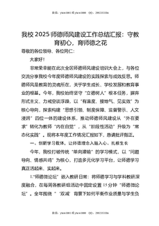 我校2025师德师风建设工作总结汇报:守教育初心,育师德之花.doc