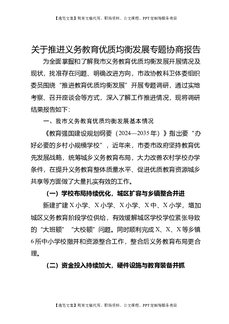 关于推进义务教育优质均衡发展的专题协商报告.doc