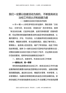 创建依法治校示范校自评报告:我们一定要以创建活动为契机,不断提高依法治校工作的认识和创建力度.doc