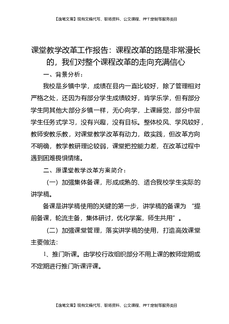 课堂教学改革工作报告:课程改革的路是非常漫长的,我们对整个课程改革的走向充满信心.docx
