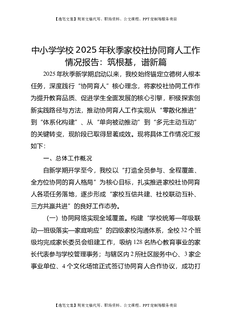 中小学学校2025年秋季家校社协同育人工作情况报告:筑根基,谱新篇.docx