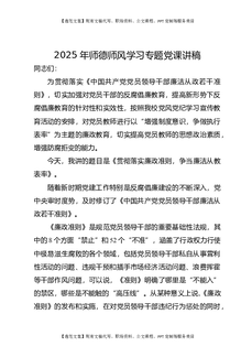 2025年师德师风学习专题党课讲稿:为贯彻落实国家教育法规,切实加强师德师风建设.docx