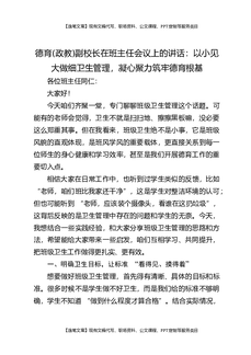 德育(政教)副校长在班主任会议上的讲话:以小见大做细卫生管理,凝心聚力筑牢德育根基