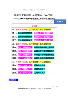 2026.4.10(写作模板)(在2026年第一季度经济工作讲评会上的讲话)乘势而上再出发 奋勇争先“双过半”