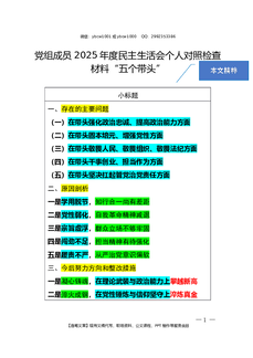 2026.1.7(写作模板)党组成员2025年度民主生活会个人对照检查材料“五个带头”