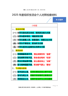2026.1.19(写作模板)2025年度组织生活会个人对照检查材料