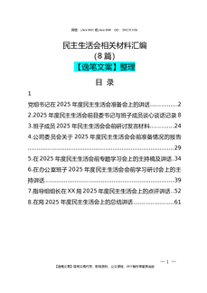 2026.1.16(写作模板)民主生活会相关材料汇编(8篇)