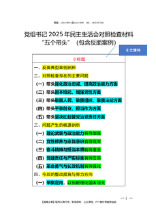2026.1.17(写作模板)党组书记2025年民主生活会对照检查材料“五个带头”(包含反面案例)