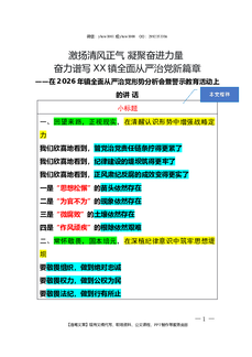 2026.4.2(写作模板)(在2026年镇全面从严治党形势分析会暨警示教育活动上的讲话)激扬清风正气 凝聚奋进力量 奋力谱写XX镇全面从严治党新篇章