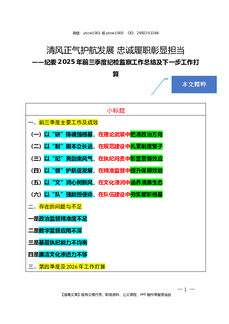 2025.10.18(写作模板)(纪委2025年前三季度纪检监察工作总结及下一步工作打算)清风正气护航发展 忠诚履职彰显担当