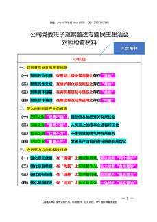 2025.10.15(写作模板)公司党委班子巡察整改专题民主生活会对照检查材料
