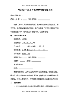 XX地下停车位使用权买卖合同.doc