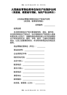 大型商业零售经营单位知识产权保护合同(供货商,联营商专用版,知识产权合同书).doc
