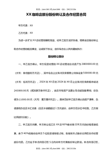 XX咖啡XX店部分股份转让及合作经营合同.docx