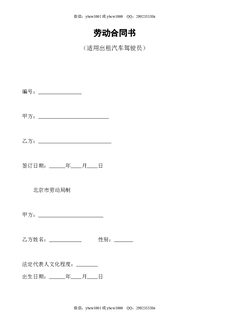 劳动合同书(适用出租汽车驾驶员).doc