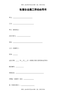私营企业雇工劳动合同书.doc