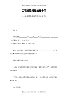 工程建设招标投标合同(土地工程施工监理服务协议书).doc