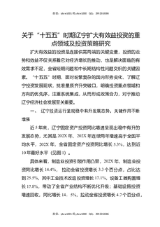 关于“十五五”时期辽宁扩大有效益投资的重点领域及投资策略研究.docx