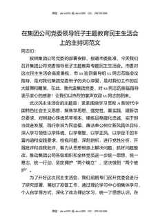 在集团公司党委领导班子主题教育民主生活会上的主持词范文.docx