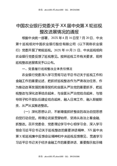中国农业银行党委关于XX届中央第X轮巡视整改进展情况的通报.docx