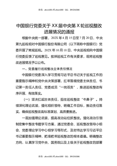 中国银行党委关于XX届中央第X轮巡视整改进展情况的通报.docx
