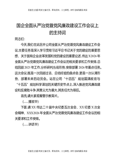 国企全面从严治党暨党风廉政建设工作会议上的主持词.docx