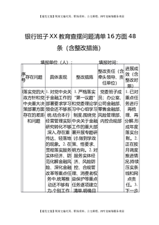 银行班子XX教育查摆问题清单16方面48条(含整改措施).docx