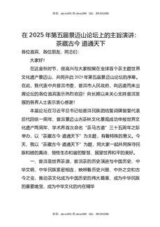 在2025年第五届景迈山论坛上的主旨演讲:茶藏古今,道通天下.docx