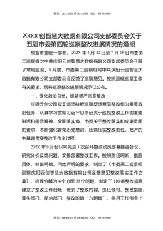 XXXX创智慧大数据有限公司支部委员会关于五届市委第四轮巡察整改进展情况的通报.docx