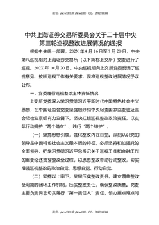 中共上海证券交易所委员会关于二十届中央第三轮巡视整改进展情况的通报.docx