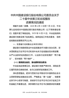中共中国建设银行股份有限公司委员会关于二十届中央第三轮巡视整改进展情况的通报.docx