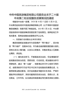 中共中国旅游集团有限公司委员会关于二十届中央第二轮巡视整改进展情况的通报.docx