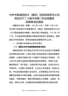 中共中国通用技术(集团)控股有限责任公司党组关于二十届中央第二轮巡视整改进展情况的通报.docx
