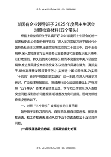 某国有企业领导班子2025年度民主生活会对照检查材料(五个带头).docx