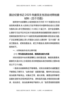 国企纪委书记2025年度民主生活会对照检查材料(五个方面).docx