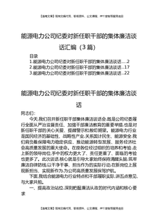 能源电力公司纪委对新任职干部的集体廉洁谈话汇编(3篇).docx
