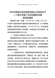 中共中国南方航空集团有限公司党组关于二十届中央第二轮巡视整改进展情况的通报.docx