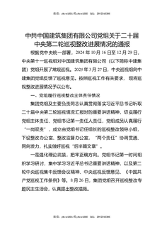 中共中国建筑集团有限公司党组关于二十届中央第二轮巡视整改进展情况的通报.docx