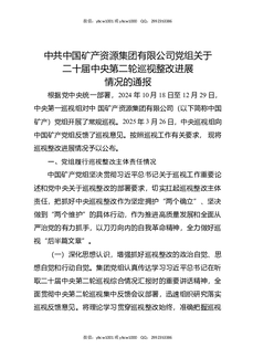 中共中国矿产资源集团有限公司党组关于二十届中央第二轮巡视整改进展情况的通报.docx