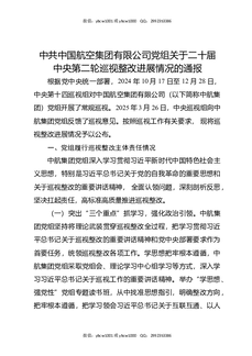 中共中国航空集团有限公司党组关于二十届中央第二轮巡视整改进展情况的通报.docx