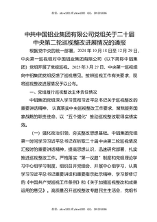 中共中国铝业集团有限公司党组关于二十届中央第二轮巡视整改进展情况的通报.docx