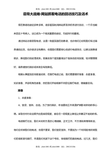 咨询大战略:网站抓取电话的回访技巧及话术.doc