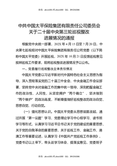 中共中国太平保险集团有限责任公司委员会关于二十届中央第三轮巡视整改进展情况的通报.docx