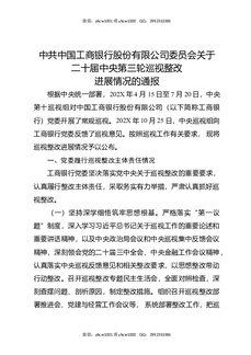 中共中国工商银行股份有限公司委员会关于二十届中央第三轮巡视整改进展情况的通报.docx